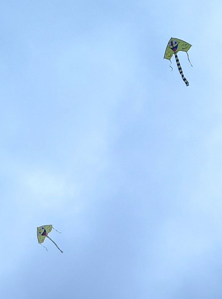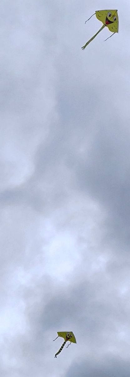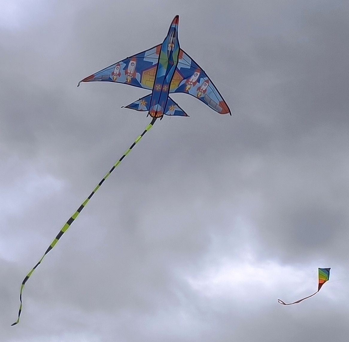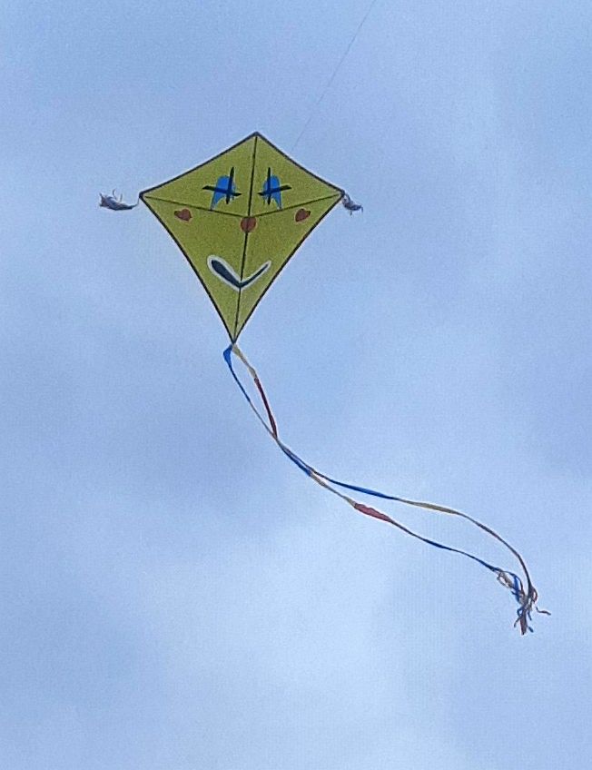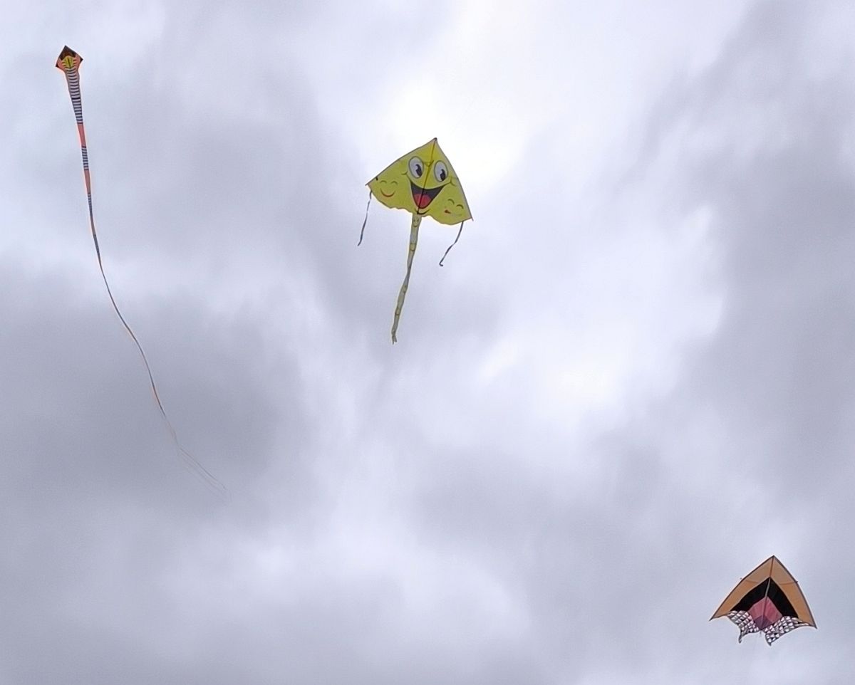 V letošním ročníku nebyl žádný doma vyrobený drak. Je to škoda, protože kupovaní jsou sice také pěkní a létají, ale přece jen ručně udělaný a pomalovaný drak je něco jiného ;-)