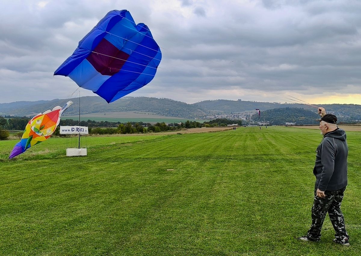 Pravidelní soutěžící s Holešova, kteří na drakiádu věšinou přijížděli už v pátek navečer, letos nedorazili, protože jeden z nich si zlomil nohu. Drakiády se nezúčastnil ani náš dlouholetý spolupracovník, pan Odehnal, protože byl v nemocnici. Naštěstí jej perfektně zastoupila paní Langasová (dcera pana Tanečka) s manželem. Nevím proč letos nepřijeli návštěvníci ze vzdálenějších končin a ani ze zahraničničí. Jestli to bylo způsobené chmurnou předpovědí počasí, nevím. Ale přesto, přijeli soutěžící i z Olomouce, Svitav, Brna, Břeclavy a bližšího okolí.