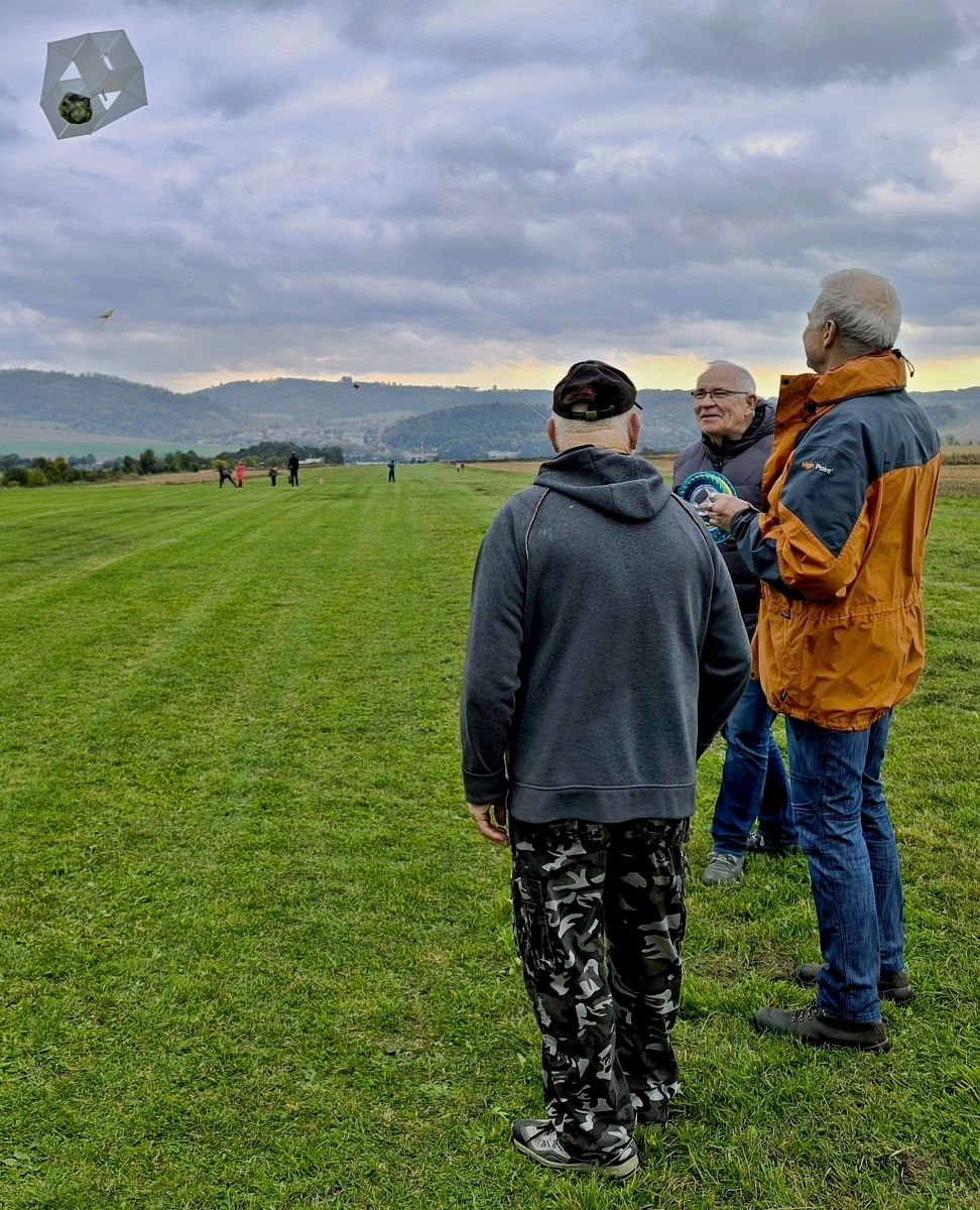 Po ukončení soutěží se někteří účastníci snažili dále pouštět draky a využít podzimní počasí k dračí zábavě, ikdyž vítr začal úpně vynechávat, až okolo 16 přestal foukat na delší dobu úplně ;-)